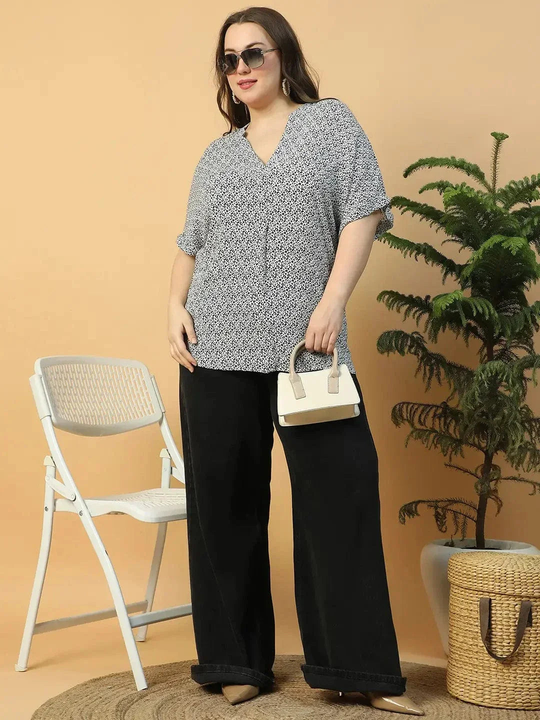 Add a touch of elegance to your wardrobe with the Real White Floral Print Short Sleeve Plus Size Women Top. Made from soft viscose, this top features a beautiful floral print on a fresh white background, bringing a vibrant, feminine feel to your look. The flattering V-neckline and short sleeves provide a comfortable and breathable fit, perfect for warmer days. The lightweight rayon crepe fabric drapes beautifully, making it a versatile piece that pairs effortlessly with jeans, skirts, or trousers for a chic, casual look.