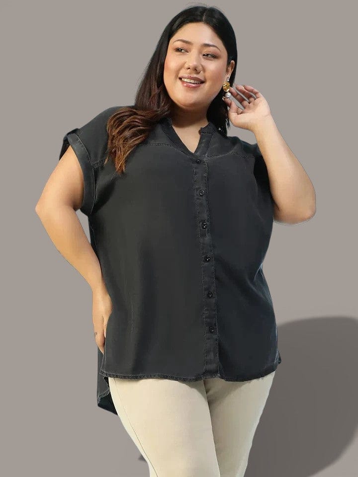 Take Your Casual Style Up A Notch With This Gleam Black Short Sleeve Denim Washed Plus Size Women Cotton Top , Made From Soft And Breathable Washed Cotton Denim For That Lived-In Feel With A Fresh Look. The Flattering V-Neckline Adds A Touch Of Femininity, While The Short Sleeves Keep It Light And Easy—Perfect For Sunny Days Or Layering Up When It Cools Down. The Solid Black Hue Gives It Timeless Versatility, Making It A Must-Have Staple For Every Wardrobe. Designed With Plus-Size Comfort In Mind, This Top Offers A Relaxed Fit That Drapes Beautifully And Moves With You All Day Long.
