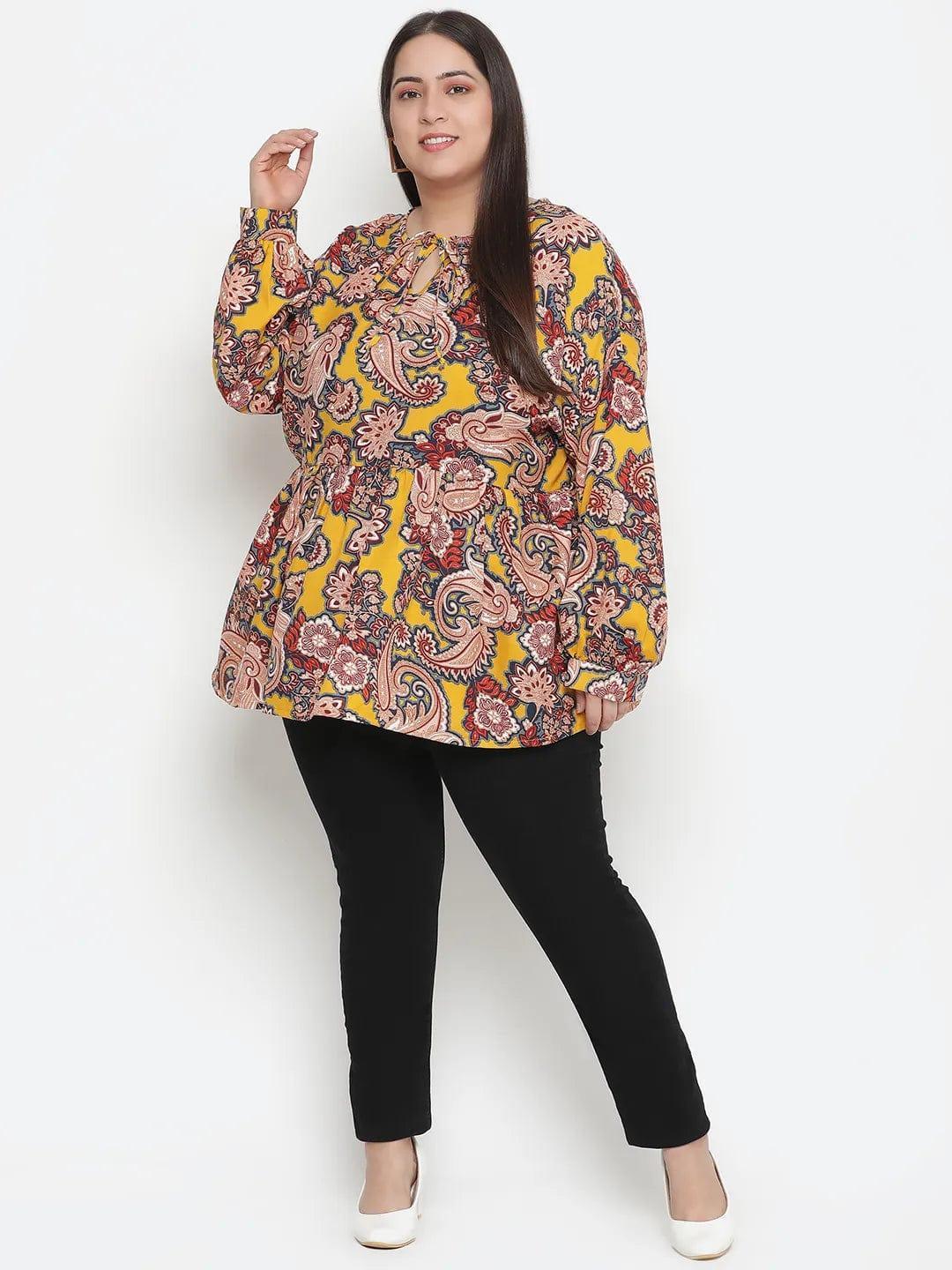 Wear the stunning prints this season with an Abstract print, elegant plus-size women's top. It is fashioned with an all-over floral print, round neckline with tie-knot to high-rise the neck, long loose sleeves, and a flared hem for an ultra-stylish look. This long top is super comfy to wear, and the trendy point is totally on up in this top.