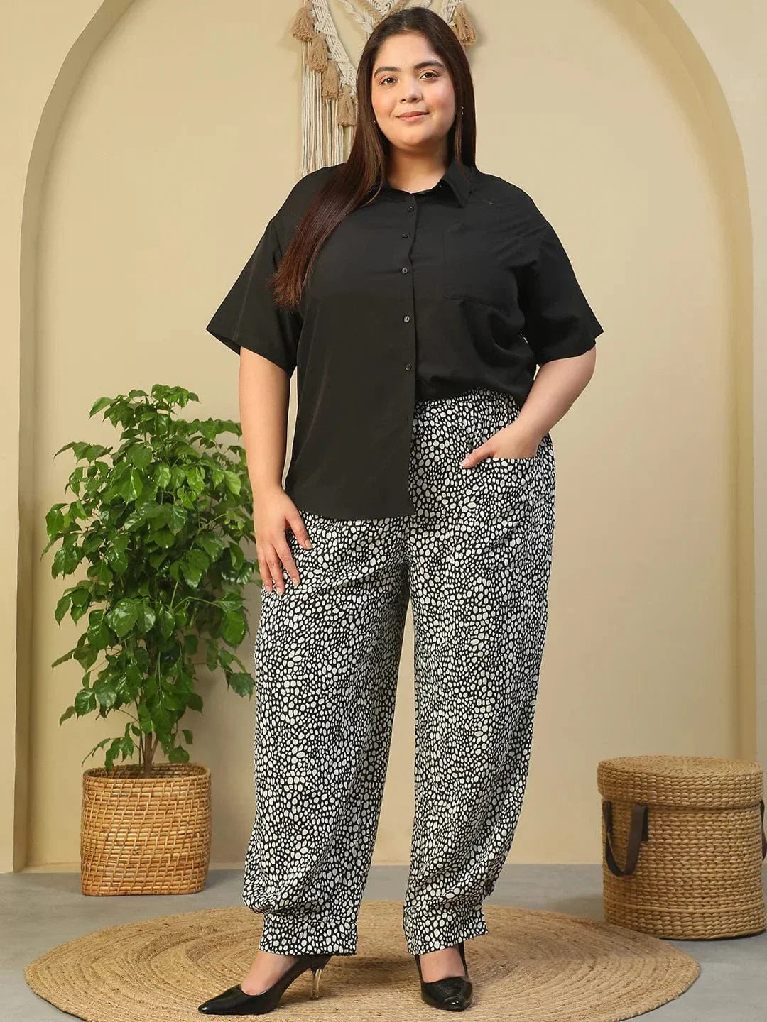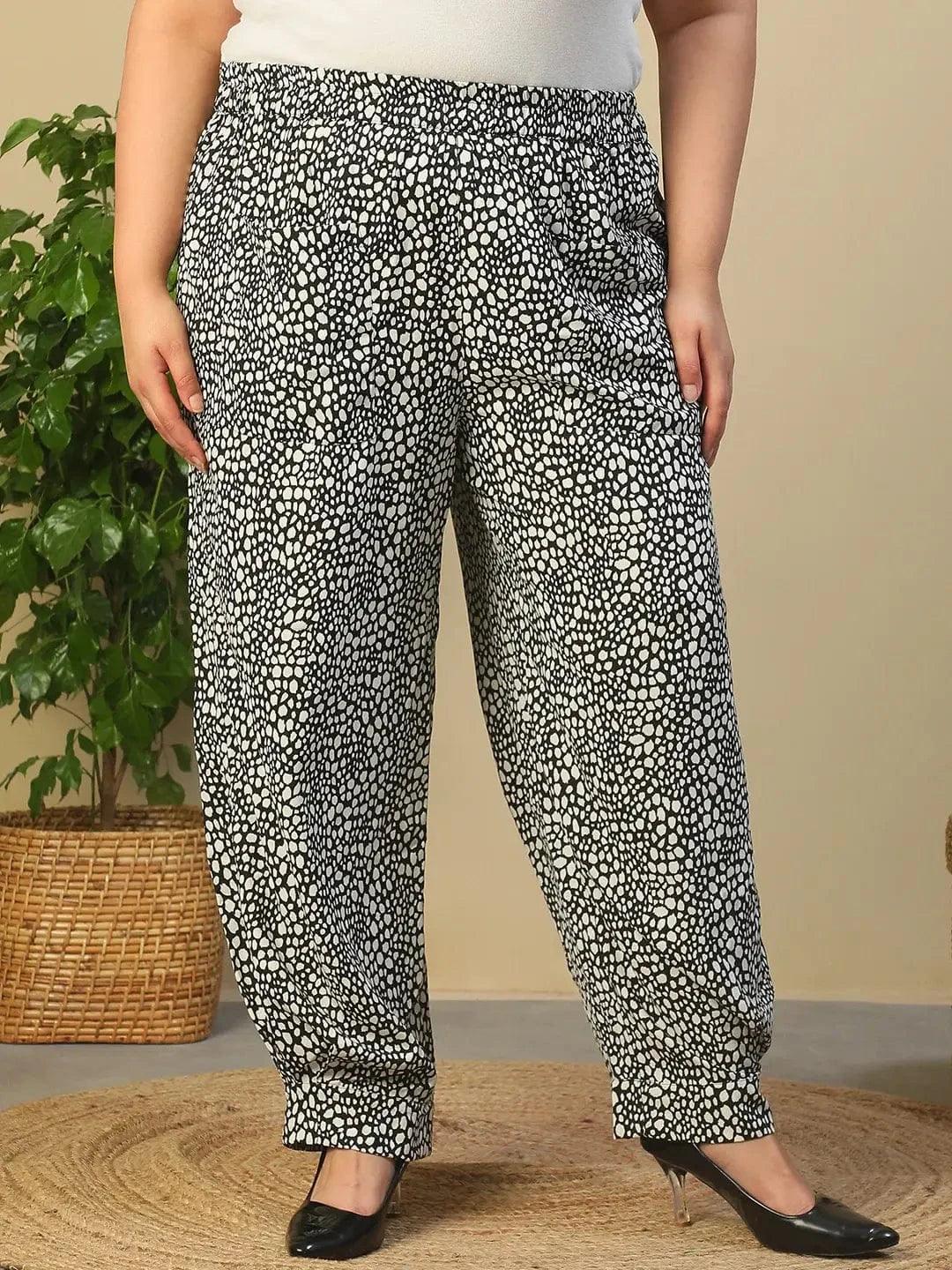 Hurry this exclusive Black Elasticated Swiss Moss Animal Print Plus Size Women Trouser With Front Pockets is available in limited quantities and designed to elevate your luxe edit collection this season. Don’t miss your chance to own a pair that perfectly balances style with functionality.