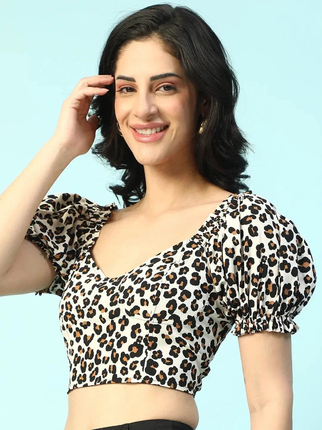 Unleash Bold Style With Every Wear In Thisglamify Black Floral Print Smocking Detail Women Crop Top. Made From Soft Polyester With A Breathable Lining, This Top Features A Smocking Detail For A Snug, Flattering Fit. The Short Sleeves Offer A Relaxed Feel, While The Striking Animal Print Adds A Fierce, Fashion-Forward Touch. Perfect For Pairing With Skirts, Jeans, Or Shorts, This Top Is Ideal For Casual Outings Or A Night Out With Friends.