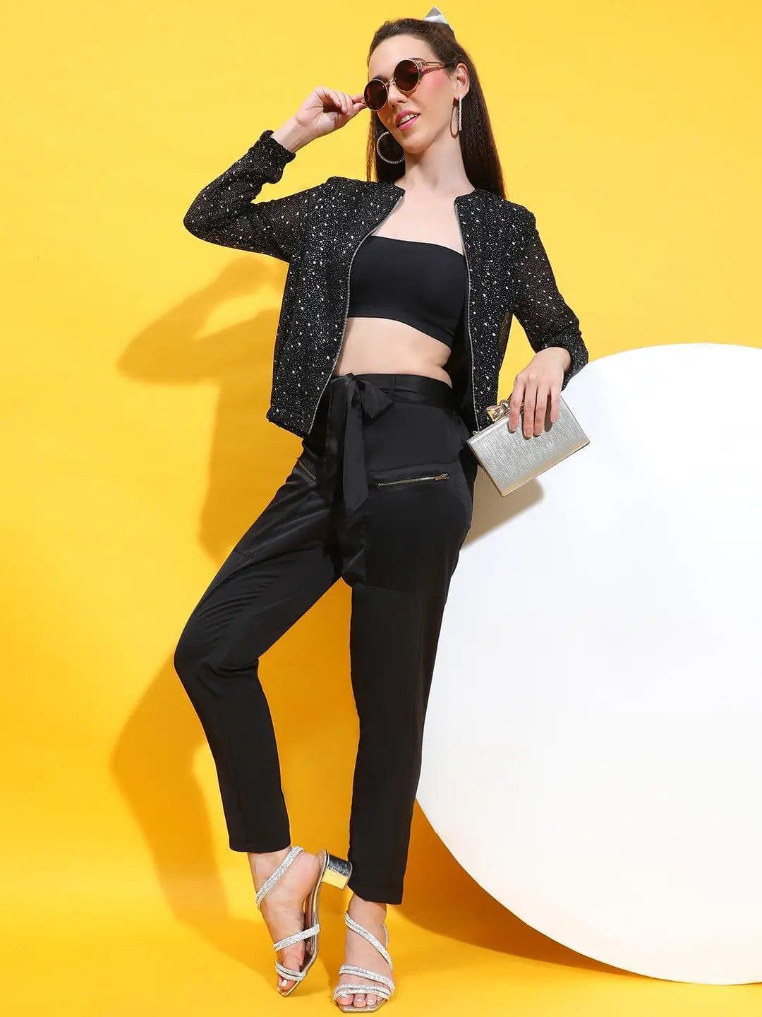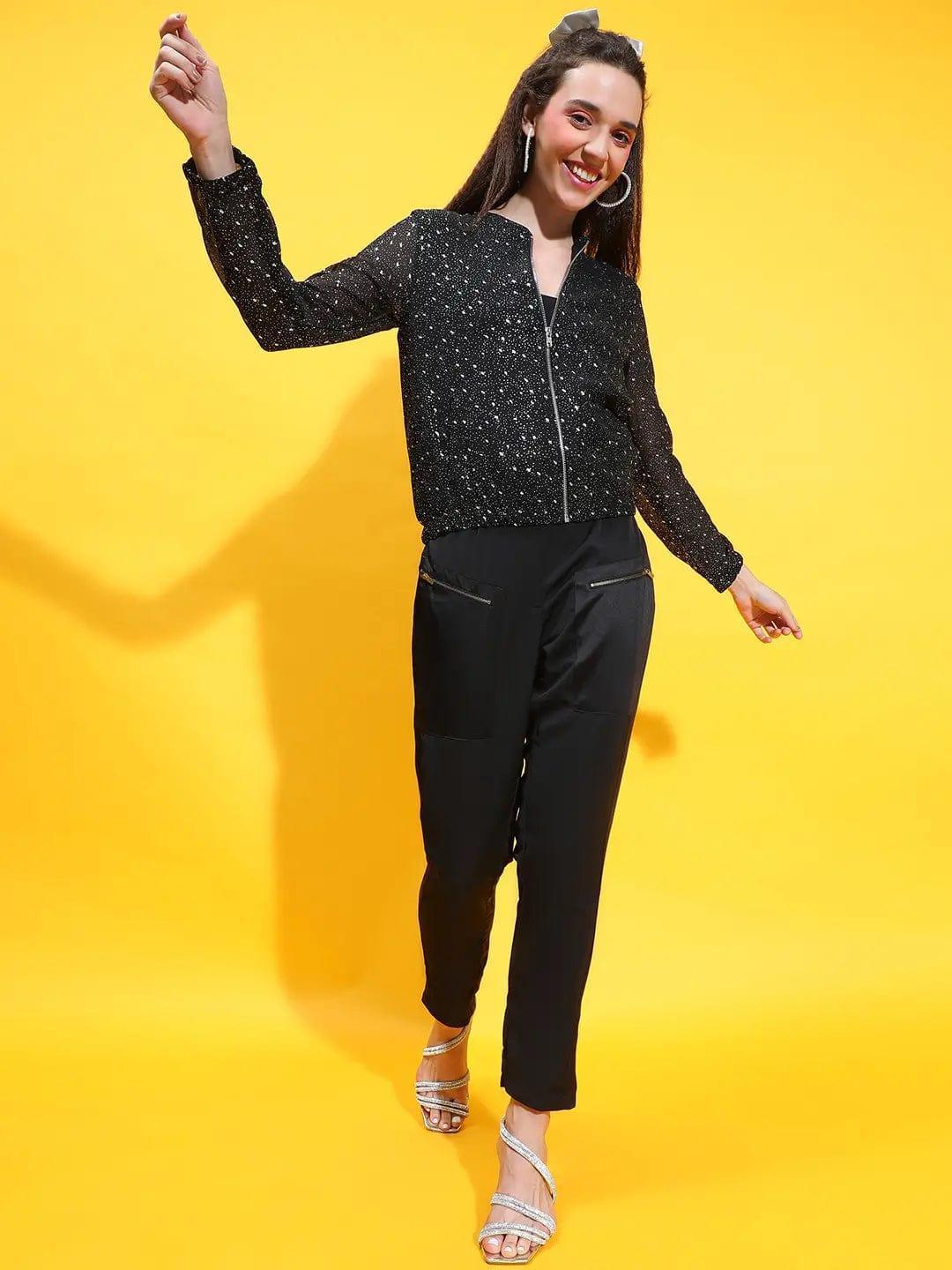 Latin Black Foil Floral Print Zip Lined Women Winter Wear Bomber Jacket is crafted for your comfort and style. Made with polyester beneath its vibrant exterior lies a cozy lining underneath, ensuring warmth and comfort even on the chilliest or days. The sleek zip front adds a touch of modern flair, while the eye-catching glittery floral foil print infuses personality into every ensemble. With practical side pockets for added functionality, this jacket is as versatile as it is chic. It is wearable in all seasons and weather. Elevate your fashion game effortlessly, whether you re running errands or hitting the town.