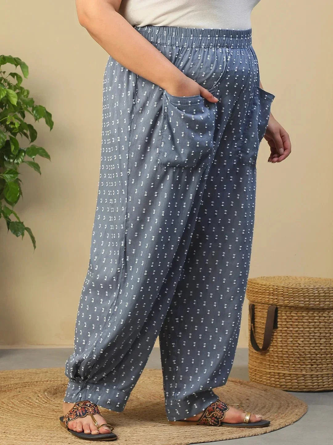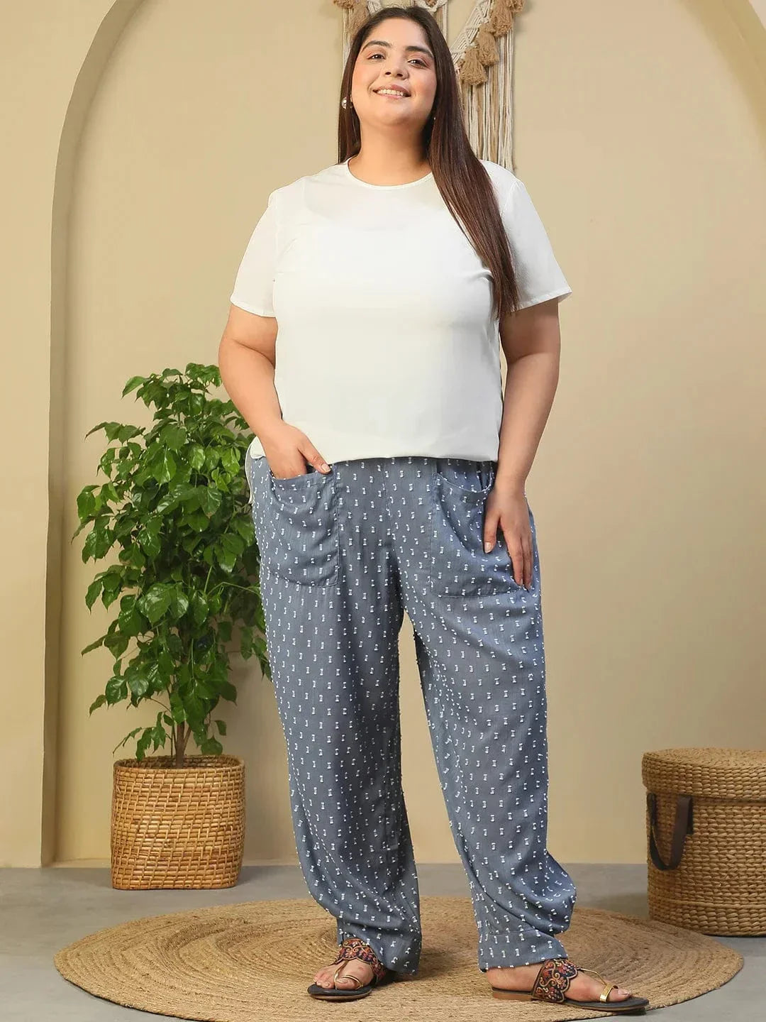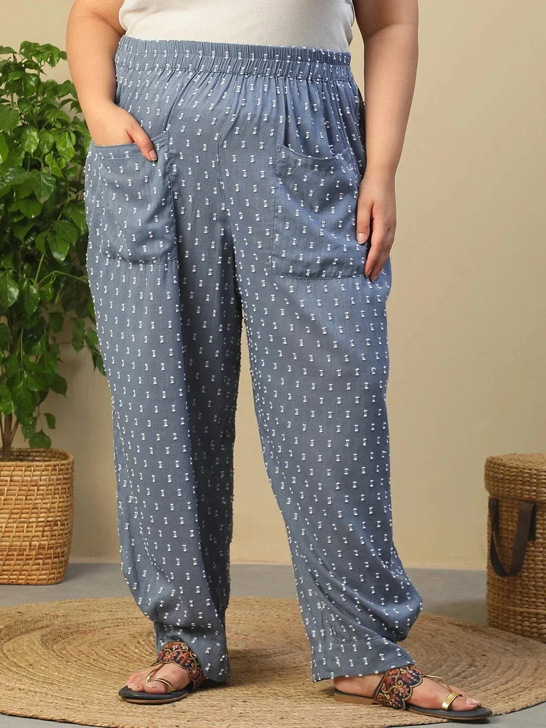 Step into the new season with our Blue Elasticated Yarn Dyed Dobby Plus Size Women Cotton Trouser With Front Pockets—a must-have addition to your spring wardrobe. This edition is crafted for those who appreciate both style and comfort, featuring premium yarn-dyed dobby cotton that offers a rich, textured look and vibrant color that lasts. Perfectly timed for casual outings or relaxed weekends, these trousers align with the growing trend of versatile, comfortable fashion that flatters every curve.