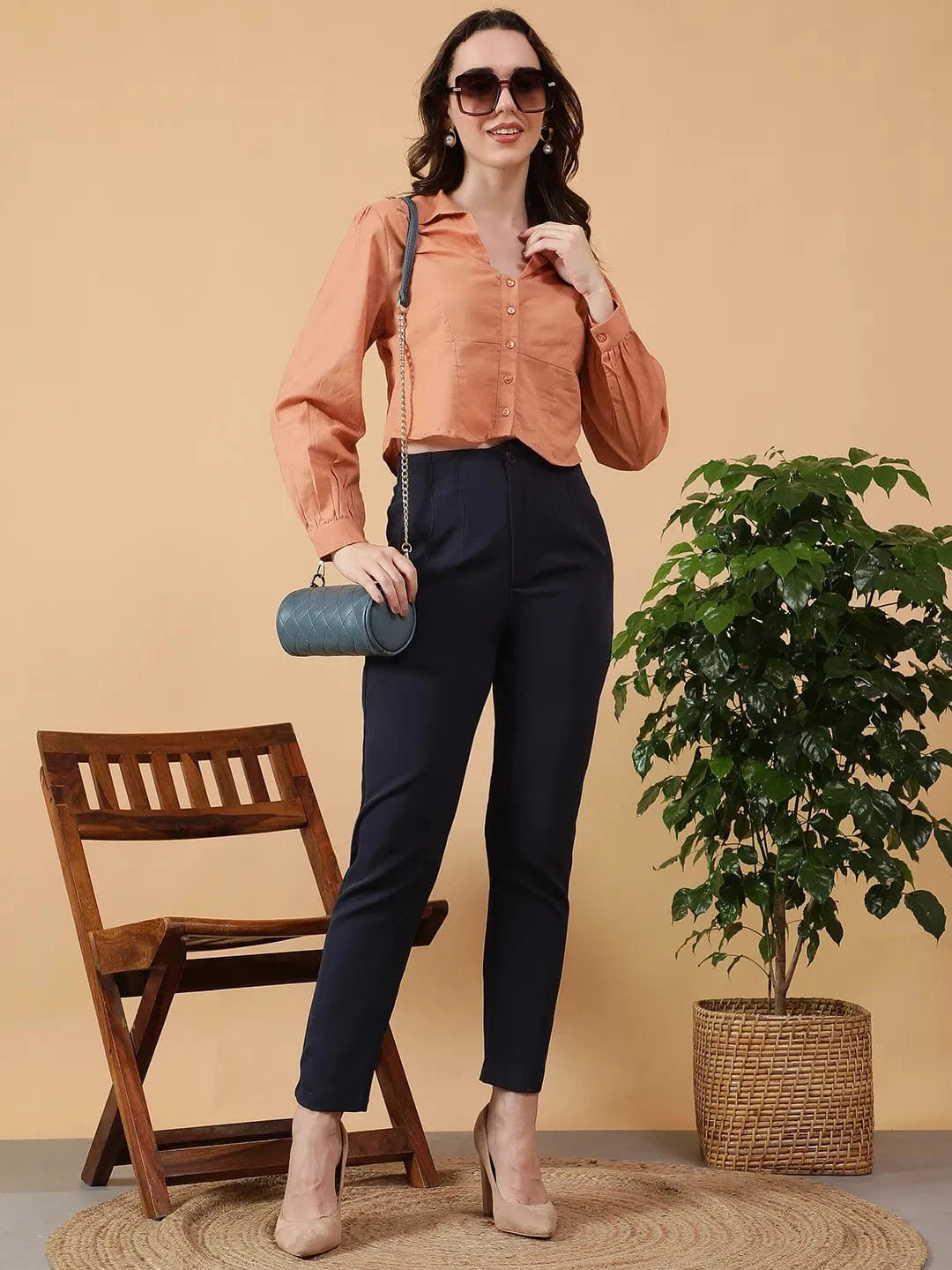 Its solid brown shade offers effortless styling versatility, pairing seamlessly with jeans, trousers, skirts, or shorts. Whether you're heading to the office, a casual outing, or a brunch date, this shirt blends comfort and elegance in one wardrobe staple.