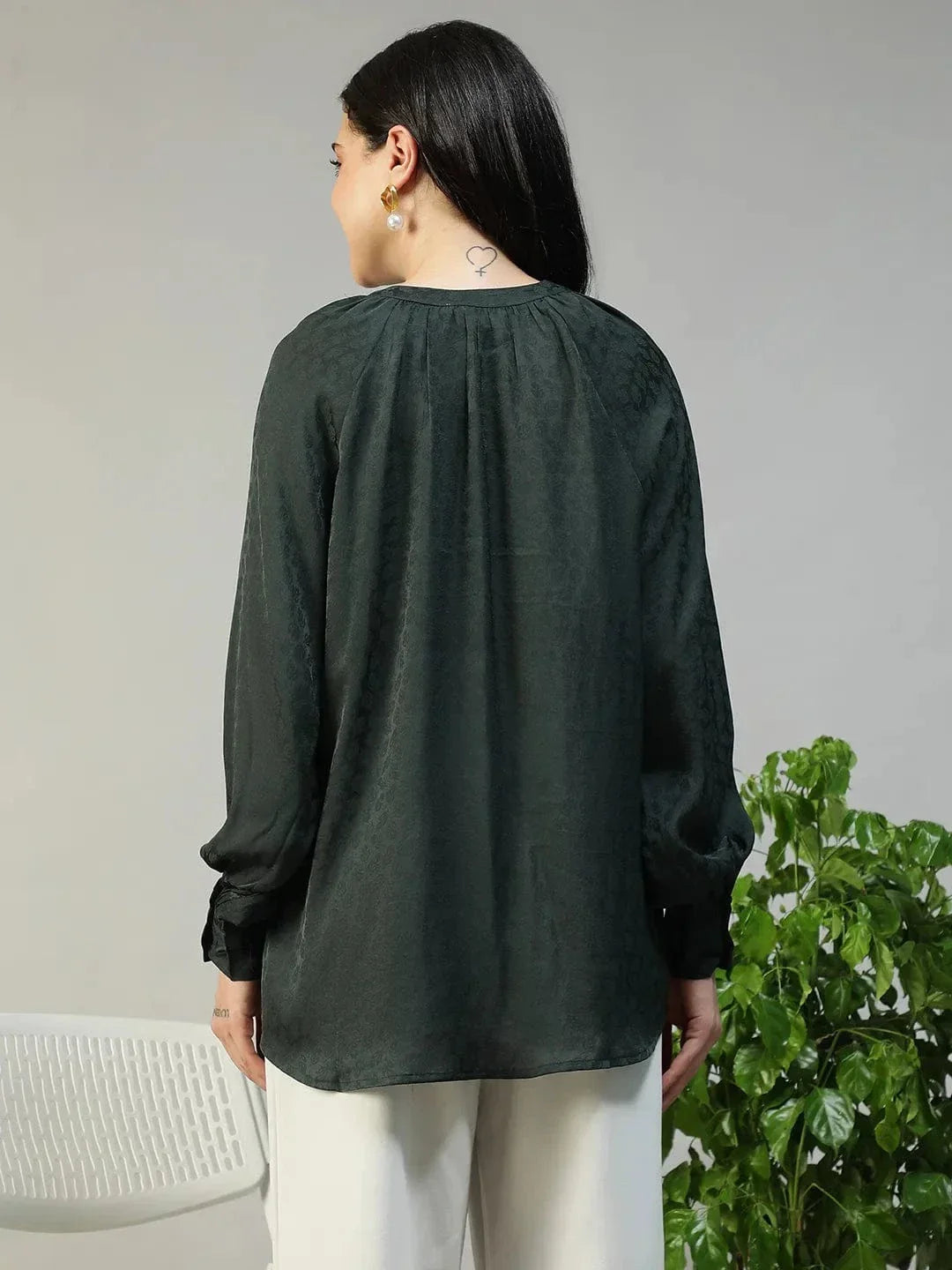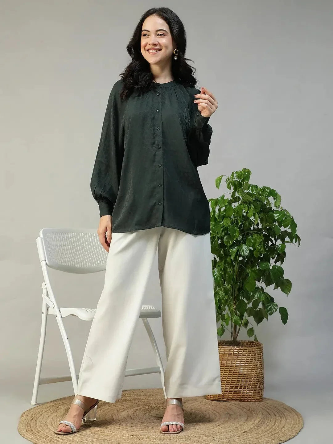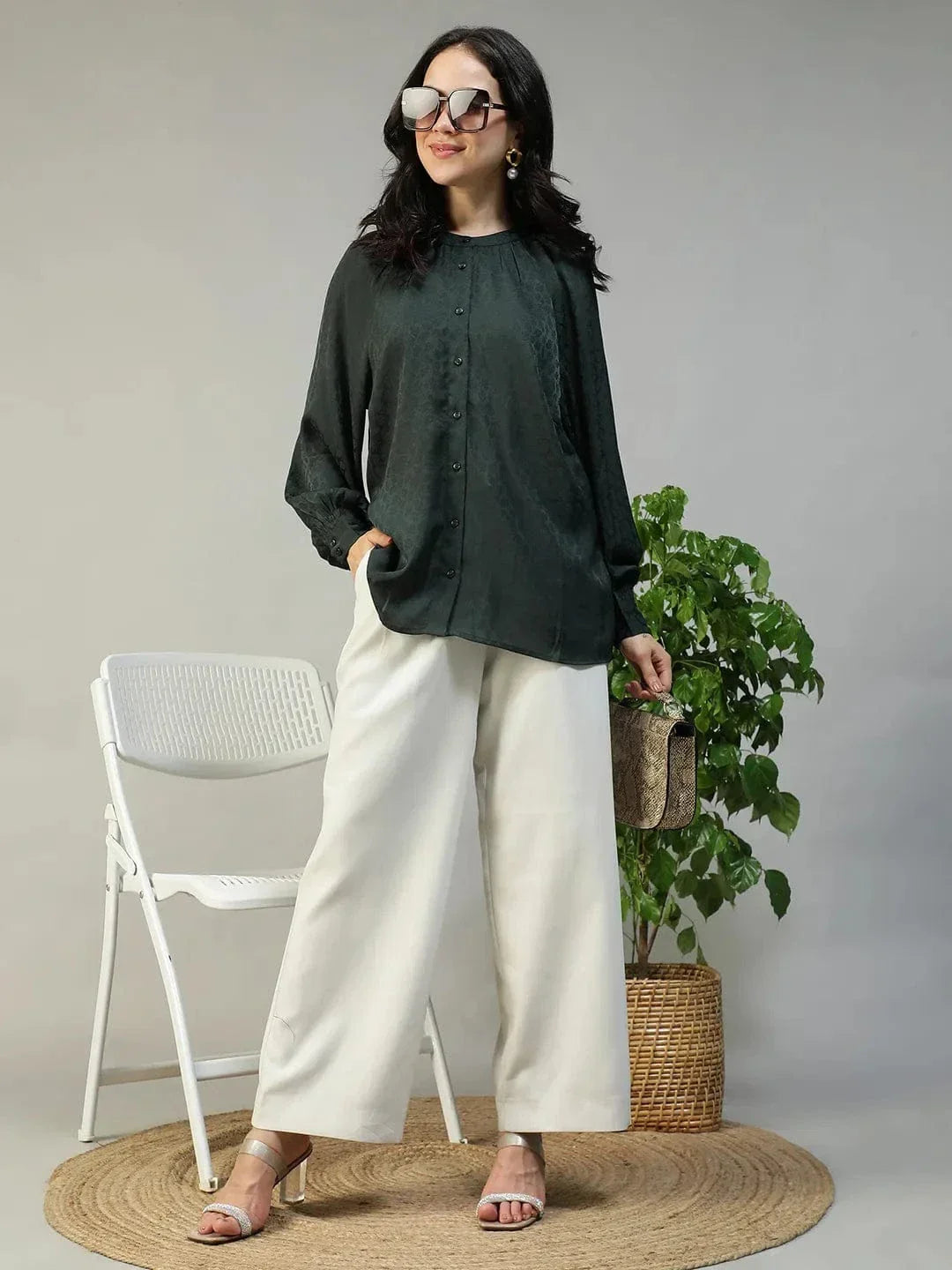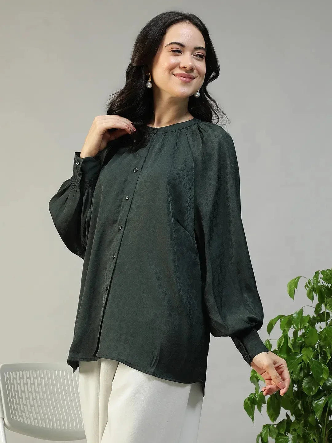 Add A Little Green Magic For Your Wardrobe, With This Fearless Green Round Neck Long Sleeve Button Down Women Top — Your New Go-To For Chic, Everyday Dressing. The Soothing Green Hue Adds Freshness To Your Look, While The Classic Round Neckline Keeps It Timeless. Designed With Long Sleeves For That Touch Of Elegance, It Features A Button-Down Front That Lets You Wear It Your Way—Buttoned Up For A Polished Vibe Or Left Slightly Open For A Relaxed Look. Made For Comfort And Versatility, This Top Transitions Beautifully From Desk To Dinner. Whether You’Re Heading To The Office, Meeting Friends, Or Just Keeping It Cool On A Casual Day, It’S The Kind Of Wardrobe Staple That Works Everywhere. The Soft Fabric Makes It Easy To Wear All Day Long, And The Sleek Fit Ensures You Always Look Put Together.