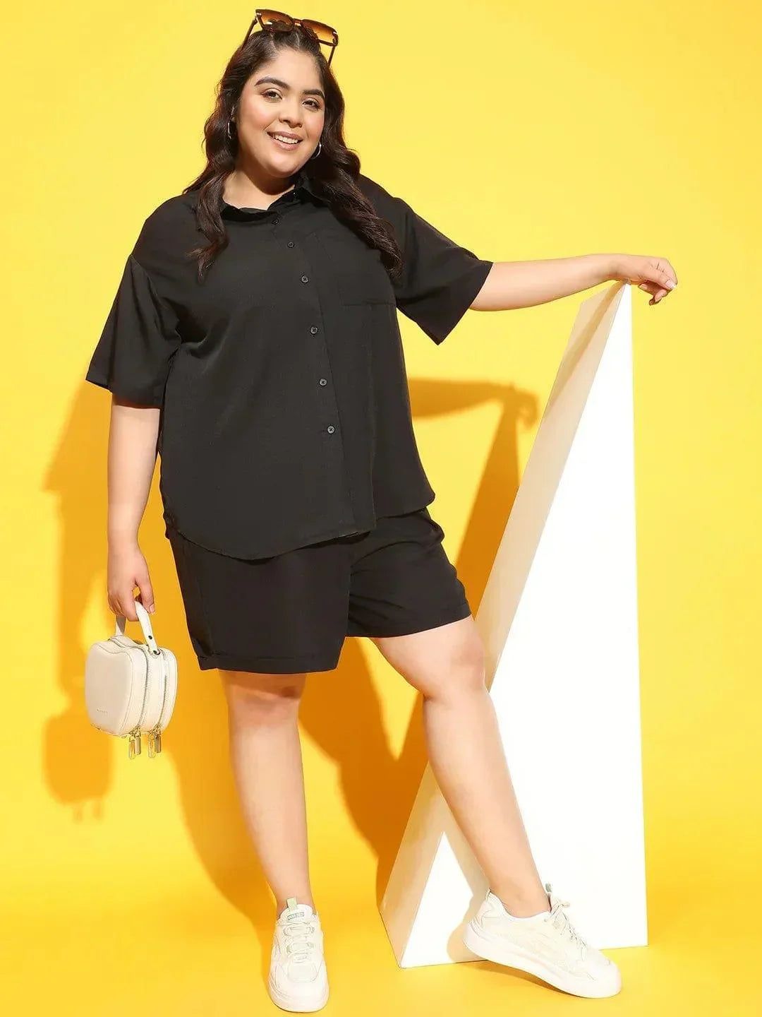 Heavy Black Button Down Short Sleeve Plus Size women shirt is crafted from durable polyester, it effortlessly combines comfort with style. Featuring a convenient chest pocket and short sleeves, it s perfect for any occasion, from casual days to holiday outings. The classic collar adds a touch of sophistication, while its versatile design allows for endless styling possibilities. For a trendy twist, layer it over a crop top and leave the buttons undone. Pair with pants, trousers, or shorts for a chic and versatile look.