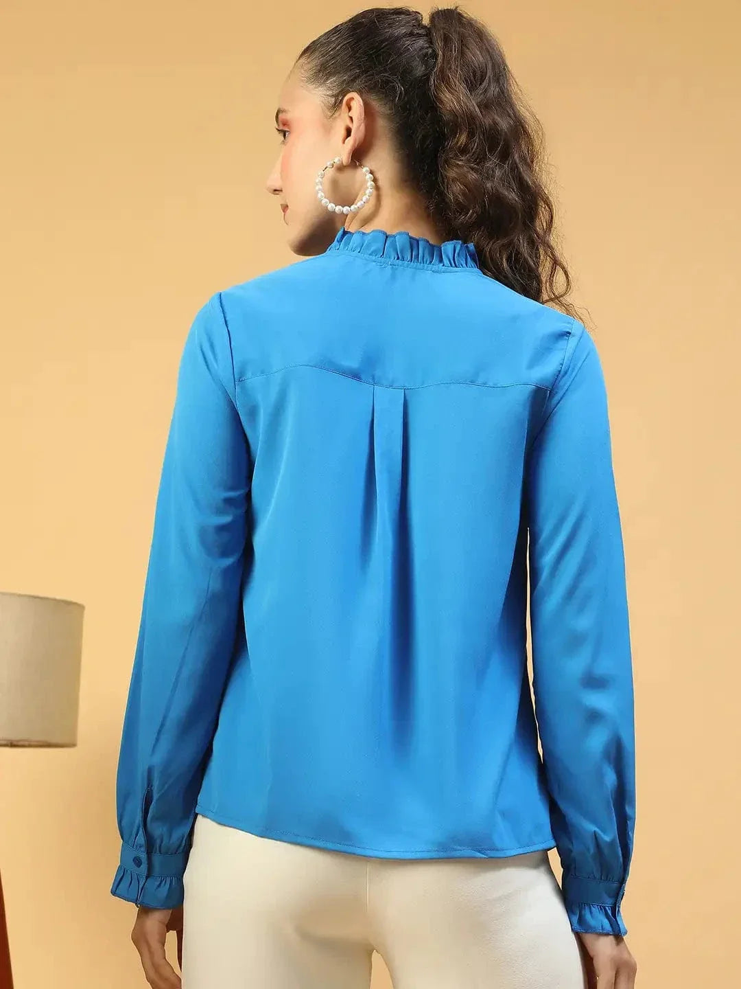 Unleash your inner style icon with the Imply Blue Frill Detailed Long Sleeve Button Down Women Pleated Shirt. This piece combines timeless elegance with a modern twist, designed for those who love to stand out. Made from luxurious polyester fabric, it offers a smooth, comfortable fit. The high neck with frill details exudes sophistication, while the button-down design and pleated texture give it a refined edge. Perfect for every occasion, from boardroom meetings to evening outings, this shirt will elevate your style to new heights.
