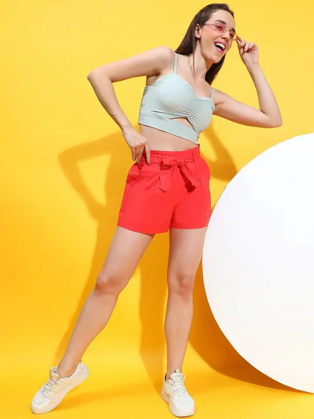 Introducing our Mega Red Elasticated Waist With Tie-Knot Belt Women Cotton Shorts?a vibrant and practical addition to your summer wardrobe. Crafted from high-quality cotton fabric, these shorts are designed to keep you cool and stylish on those warm days. The bold mega red color adds a pop of personality to any outfit, while the elasticated waist ensures a comfortable and flattering fit for all body types. Plus, with the added tie-knot belt detail, you can cinch in the waist for a customizable look. But that s not all?these shorts also feature convenient pockets, perfect for storing your essentials while you re on the go. Whether you re running errands or lounging at home, these shorts have you covered. Pair them with a simple white tee for a casual daytime look, or dress them up with a flowy blouse and sandals for a chic evening ensemble. Comfortable, versatile, and effortlessly stylish, these Cotton Shorts are a must-have for the season ahead.