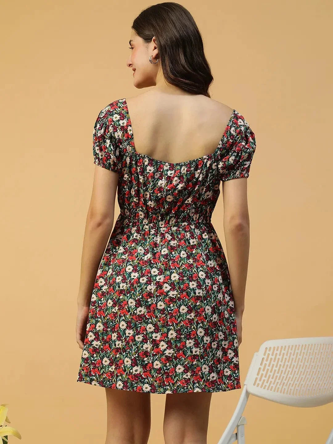 This Multicolor Floral Print Short Sleeve Elasticated Women's midi dress is a perfect blend of elegance and comfort. Made from soft, breathable polyester fabric, it features a flattering square neckline and short sleeves for a chic, effortless look. The elasticated waist ensures a comfortable fit while accentuating your shape. The vibrant multicolor floral print adds a pop of color, making this midi dress ideal for spring and summer events, brunch dates, or casual outings. A stylish and versatile piece that’s both feminine and functional.