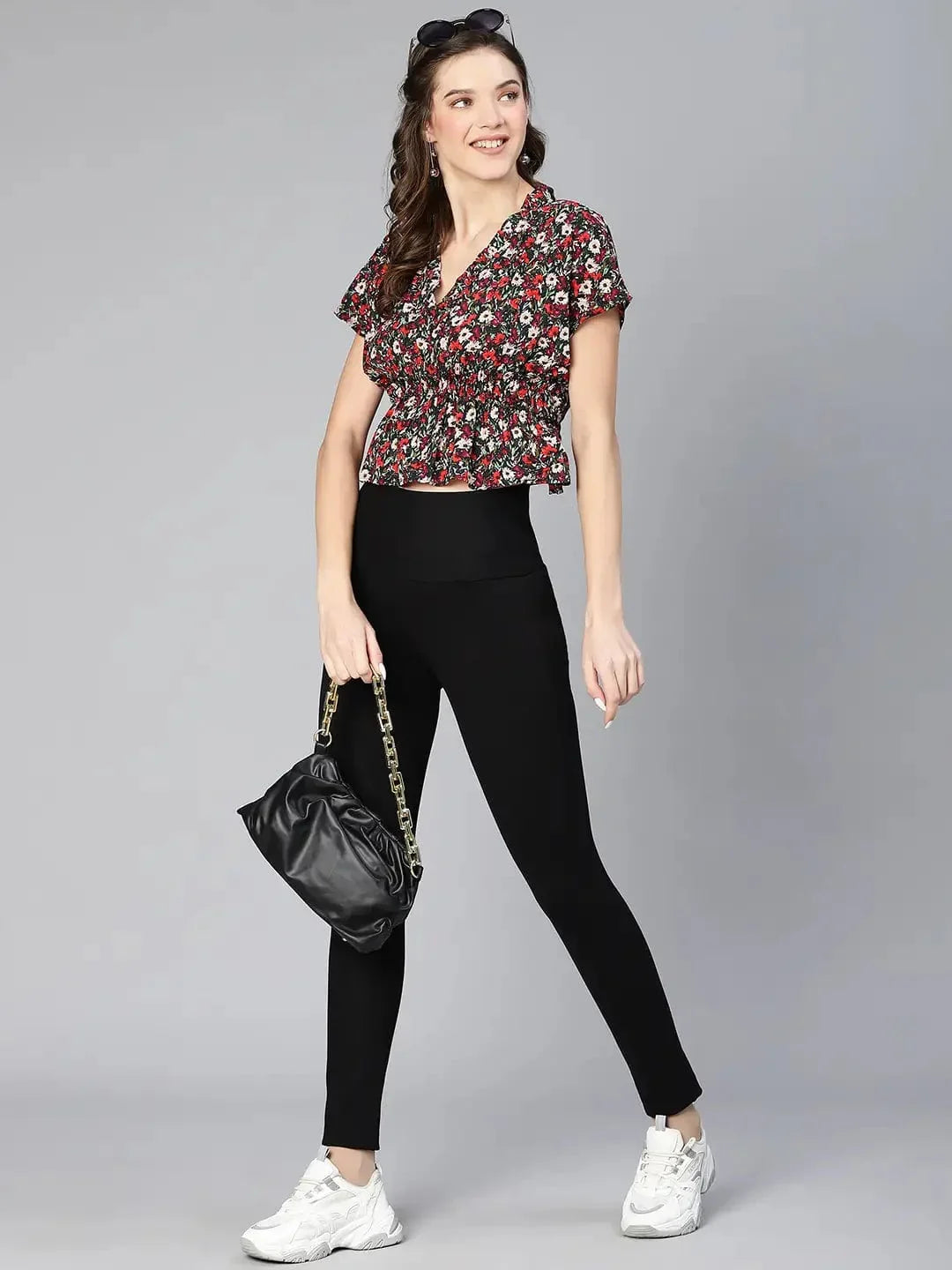 Make your look full of trend & treasure by wearing this Blazed multicolored floral print elasticated Women's top which is made with polyester fabric, and has a great quality, finest fit, and rich look. It features an all-over floral print, v-neckline, short sleeves, elasticated waist to highlight the look, flared hem, and ln length to the waist. Style it with shorts or pants along with nice earrings, and footwear for and chic look and look dazzling wearing this one.