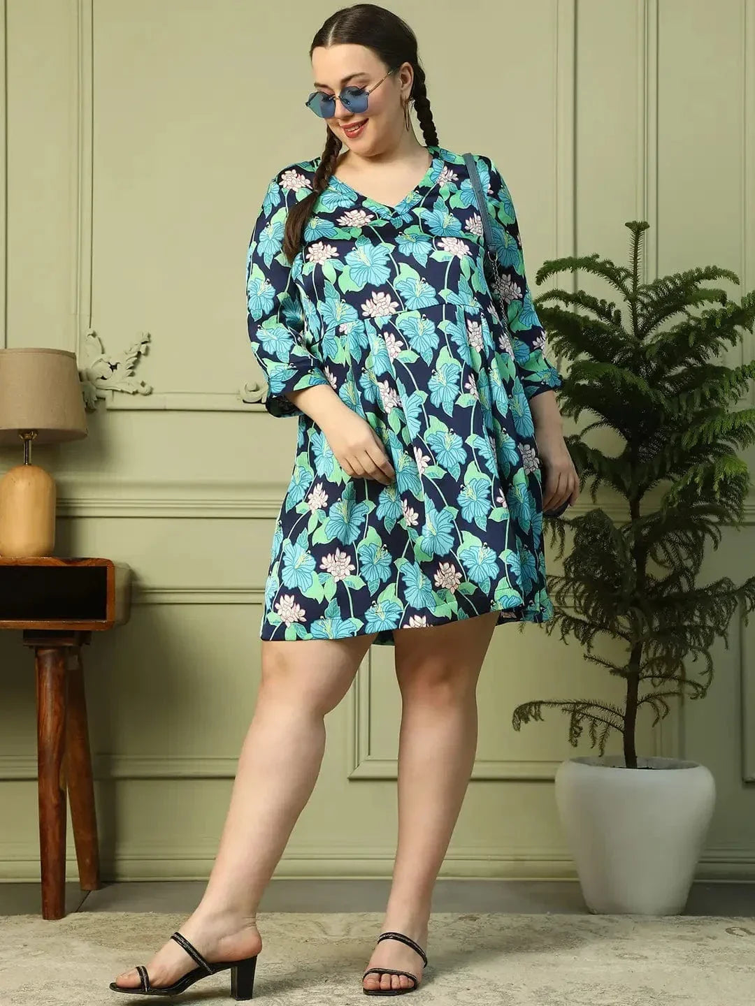 Shine, slay, and rule the fashion world with the Plus Size Multicolor Floral Print V-Neck Long Sleeve Knee Length Dress. Made from soft and breathable polyester, this dress features a vibrant multicolor floral print that adds a bold and refreshing touch to your wardrobe. The V-neckline and long sleeves create a sophisticated look, while the knee-length design offers a perfect balance of elegance and comfort. Whether for a casual outing or a special event, this dress will have you turning heads and feeling fabulous.
