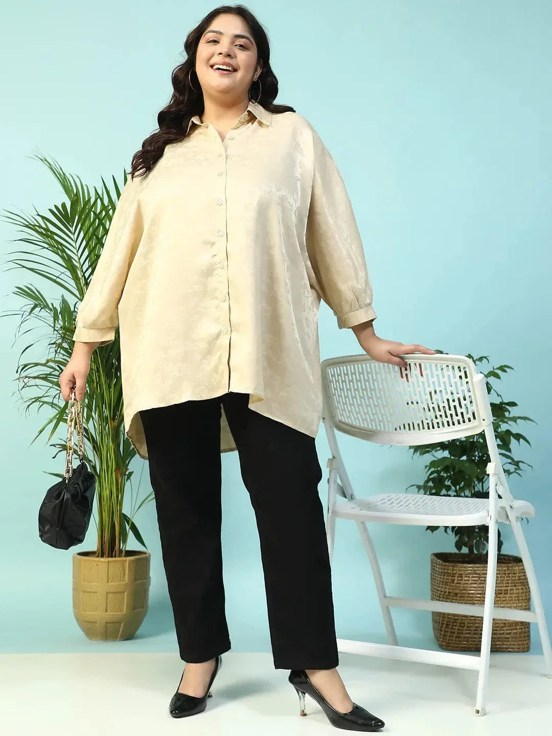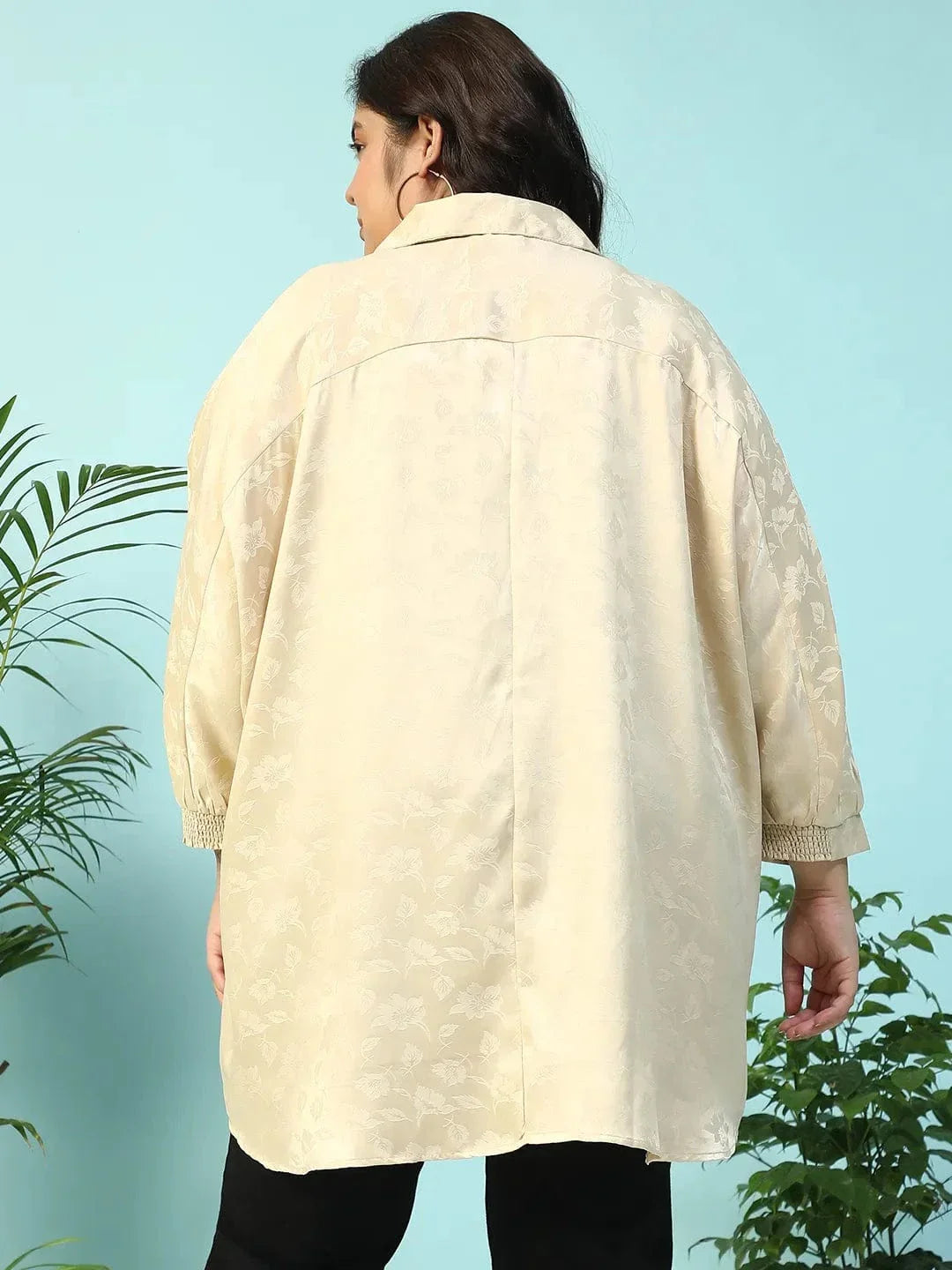 Bring a fresh floral touch to your wardrobe with this Latte Beige Floral Print Short Sleeve Collared Button Down Plus Size Oversized Shirt. Made from soft, breathable polyester, it offers an easy, oversized fit for all-day comfort. The classic collared neckline and short sleeves create a timeless silhouette, while the button-down front adds a stylish, functional detail. Perfect for layering or wearing solo, this shirt combines elegance and ease, whether you are dressing up for a casual outing or keeping it relaxed for a day of leisure.
