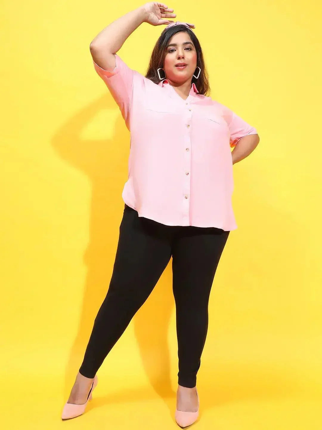 Celebrate sophistication with this classic Buzzy Pink Collared Button Down Short Sleeve Plus Size Women Cotton Shirt in a delicate light pink hue, designed to flatter and enhance the curves of plus-size figures. The collared neckline adds a touch of refinement, while the button-down front ensures effortless wearability and versatility. Crafted from cotton fabric known for its softness and durability, this shirt offers a lightweight and breathable feel, making it ideal for year-round comfort and easy layering. The short sleeves provide ample coverage and a polished look, perfect for pairing with tailored pants for a professional ensemble or with jeans for a relaxed yet chic vibe. Whether worn tucked in or left untucked, this shirt promises effortless style and comfort.