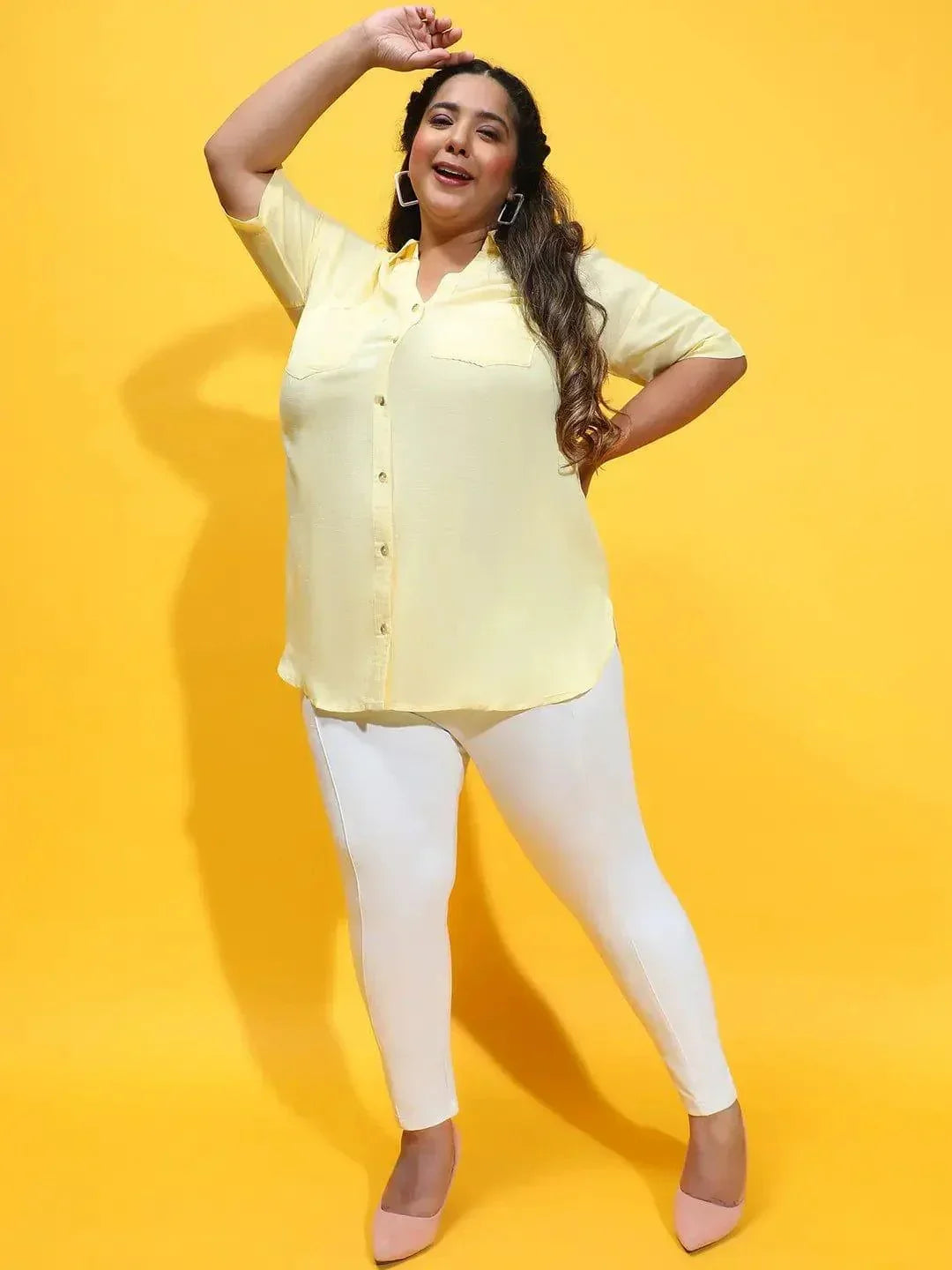 Celebrate sophistication with this Melted Yellow Collared Button Down Short Sleeve Plus Size Women Cotton Shirt . Designed to flatter and enhance plus-size figures, it features a collared neckline for refinement and a button-down front for effortless wearability and versatility.