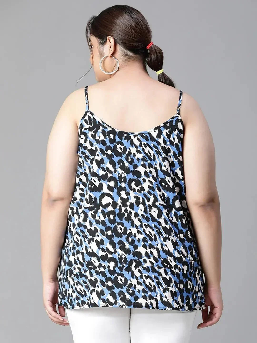Striking multicolor shoulder strap animal print plus size women top is made with high-quality polyester, it s a perfect blend of fashion. This top is the ideal choice for adding a pop of color to your wardrobe. With its versatile round neck and chic shoulder straps, it s ready for any occasion. Pair it with nice looking bottom wear and step out in style in this eye-catching piece.