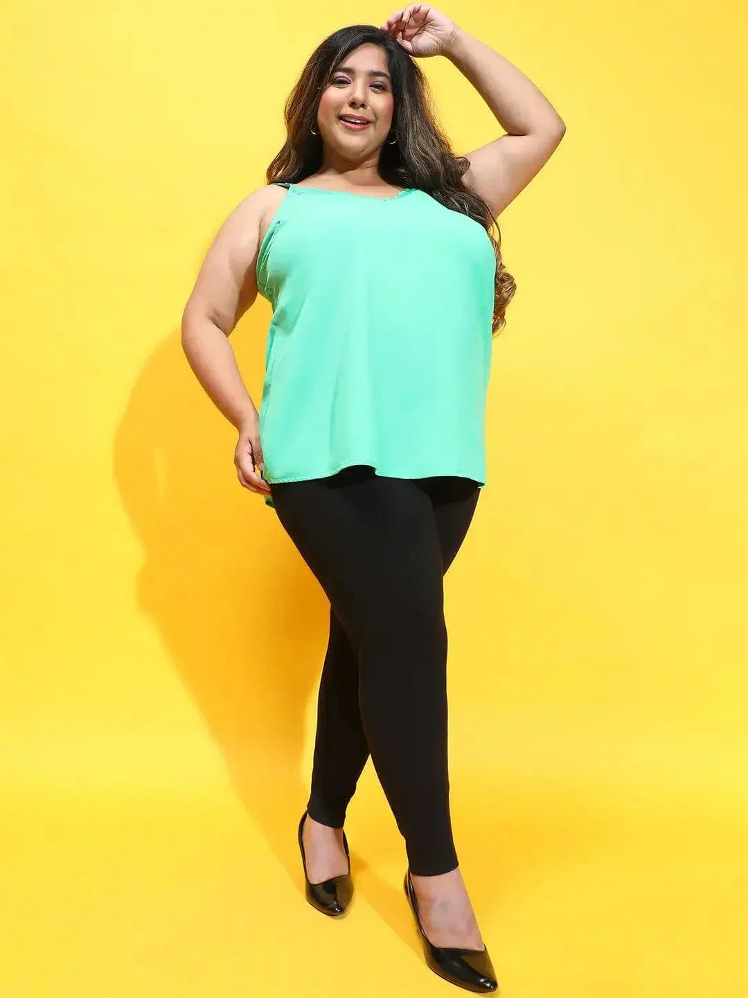 Unveil sophistication and versatility with this Mania Green Sleeveless Lace Detailed Plus Size Women Sleeveless Top , perfect for adding a refreshing touch to your ensemble. The V-neckline complements all figures, while delicate lace detailing along the shoulders and neckline adds a hint of elegance. Crafted from polyester fabric known for its durability and easy care, this top ensures a lightweight and breathable feel, making it ideal for layering or wearing solo on warm days. The sleeveless and strappy design offers a flattering silhouette and unrestricted movement, ideal for pairing with jeans or skirts for a casual outing or dressing up with tailored pants for a more polished look. Whether worn alone or under a jacket, this top promises comfort and effortless style.