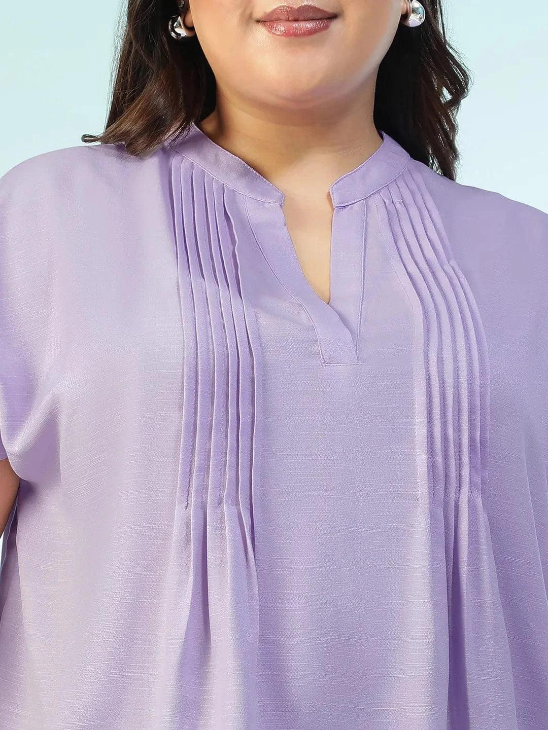 Graceful, breathable, and made to flatter — this purple beauty is an instant mood-lifter! Crafted in soft, airy viscose slub fabric, this Tint Solid Purple Pleated Flutter Short Sleeve Plus Size Women Top combines everyday comfort with elevated texture. The slub weave adds subtle dimension to the solid hue, giving it a breezy yet refined look. The Mandarin V-neckline highlights your neckline, while flutter sleeves and pleated detailing bring in a soft, feminine flair. Designed for a relaxed, curve-friendly fit, it’s your perfect pick for everything from weekday errands to weekend brunches.