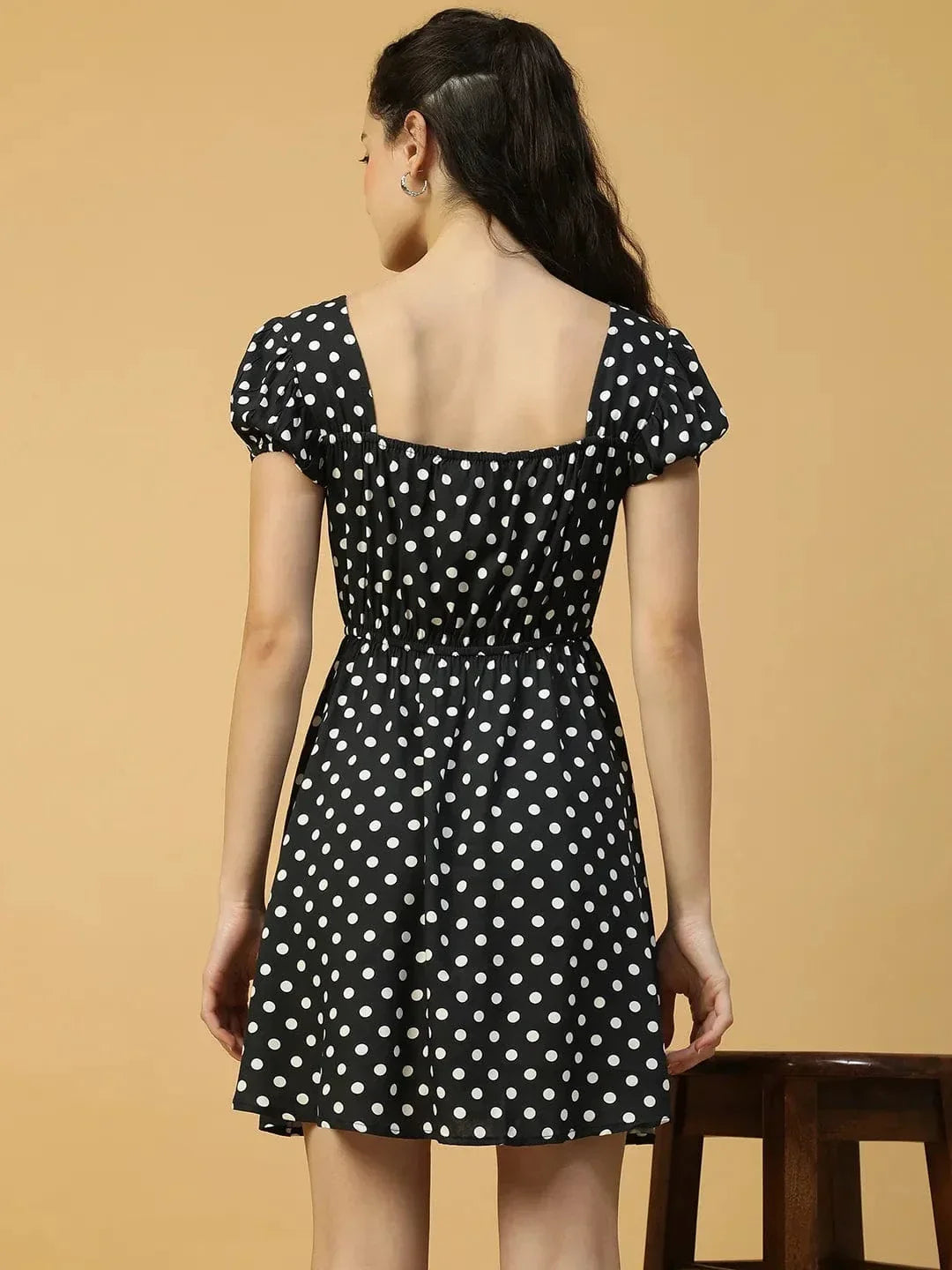 This Preppy Black Polka Dot Print Short Sleeve Elasticated Women's midi dress adds a playful twist to your wardrobe. Made from comfortable polyester fabric, it features a flattering square neckline and short sleeves for a cute, classic look. The elasticated waist ensures a perfect, flattering fit, while the black polka dot print adds a fun, retro vibe. Ideal for both casual outings and semi-formal events, this midi dress brings a touch of whimsy and sophistication to any occasion.