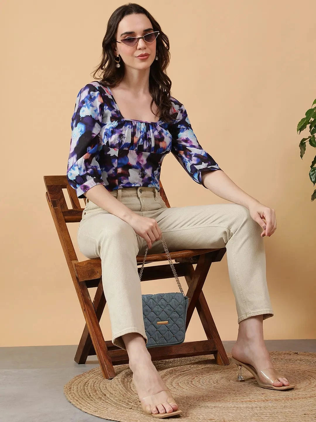 Bring a burst of energy and playful vibes to your wardrobe with this Radiant Multicolor Tie-Dye Print Square Neck 3/4 Sleeve Women Top. Made from soft, breathable viscose, it drapes effortlessly over the body, offering all-day comfort without compromising on style. The square neckline creates a flattering frame for your collarbone and adds a touch of modern elegance, while the 3/4 sleeves make it versatile for both cooler days and layering under jackets or cardigans. Every top is a little piece of wearable art thanks to the tie-dye slub print, blending a swirl of vibrant colors for a unique, one-of-a-kind look. The textured slub fabric adds subtle depth and character, elevating a casual top into a statement piece. Its relaxed yet structured fit makes it perfect for a variety of occasions—whether you’re going for a laid-back brunch, a casual day out, or pairing it with tailored pants for a smart-casual look.