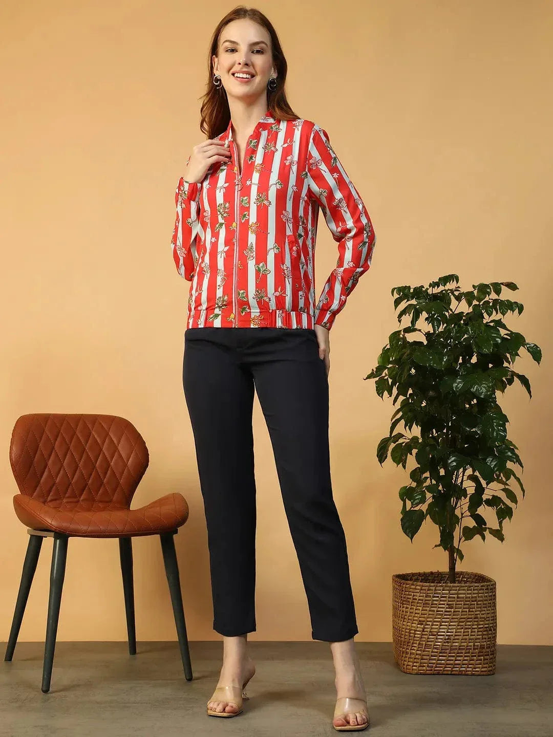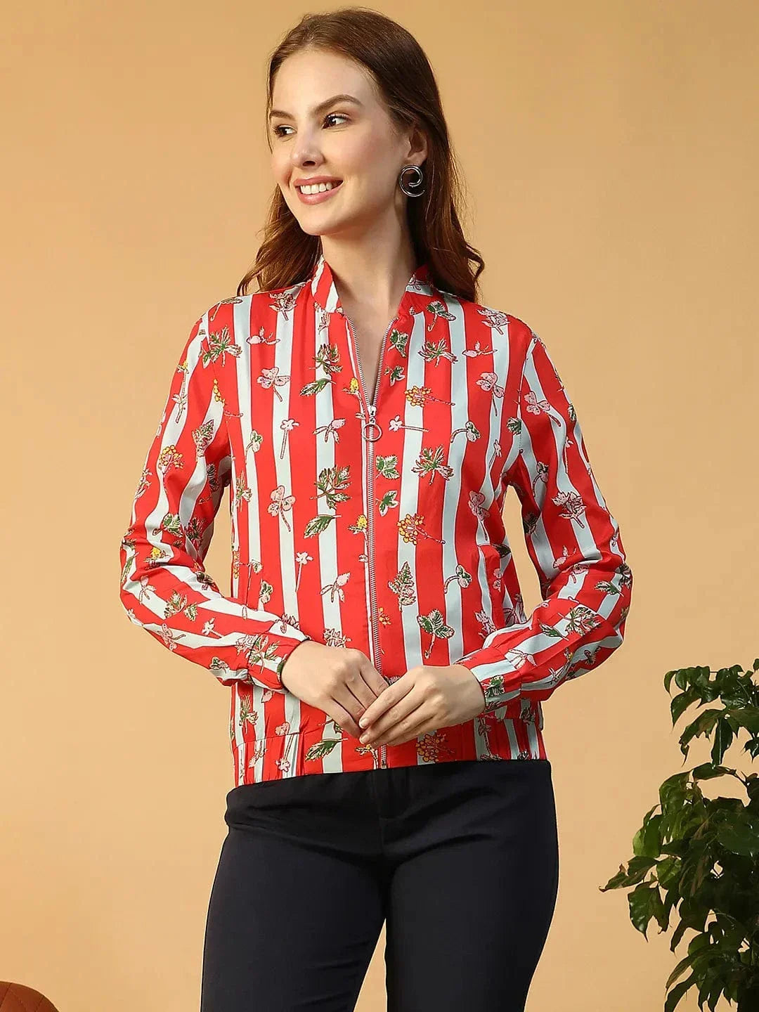 Add A Pop Of Floral Fun To Your Layering Game With This Sapphire Red Floral Print Long Sleeve Zip-Front Elasticated Women Bomber Jacket. Made In Smooth And Durable Polyester, It’s Designed With A Classic Round Neck, Zip-Front Closure, And Long Sleeves For An Effortlessly Cool Vibe.