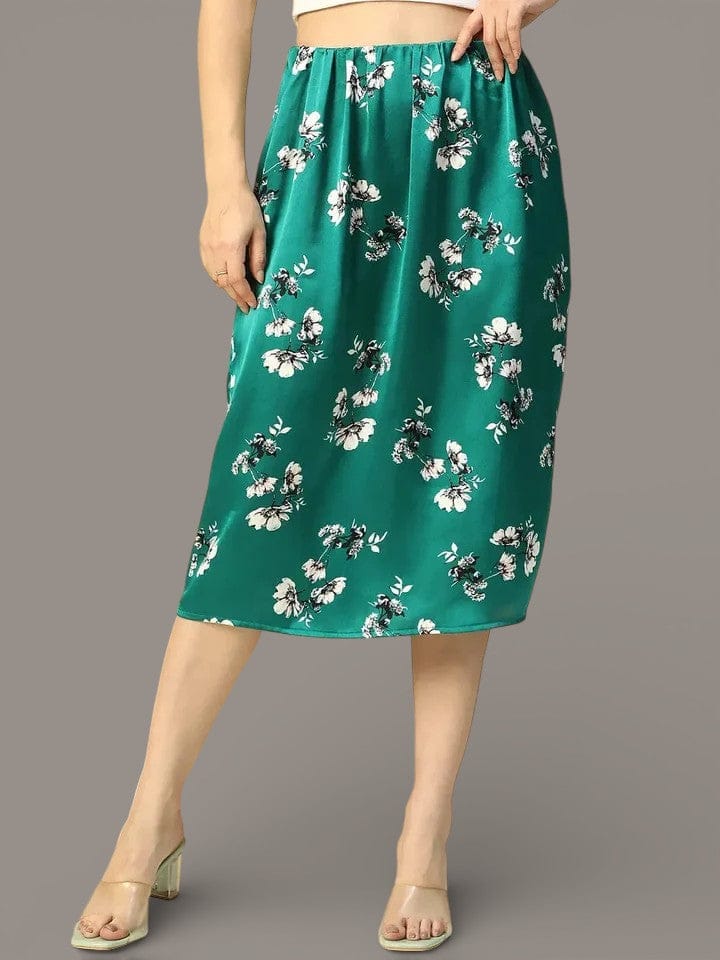 Breathe life into your wardrobe with a Slaying Green Floral Print Elasticated Knee Length Women Satin Skirt. Made from premium polyester satin, it features a lively floral print and an elasticated waist for maximum comfort. The knee-length silhouette makes it versatile enough for both day and evening looks. Style it with a crop top or a shirt for a balanced, stylish outfit.