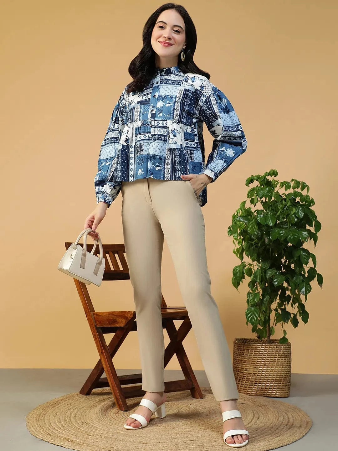 Make A Statement Without Saying A Word. Thisviral Blue Abstract Print Round Neck Button Down Long Sleeve Women Cotton Topis All About Effortless Style And Everyday Comfort. Crafted From Soft, Breathable Cotton, It Keeps You Cool And Comfy While Giving You A Polished, Put-Together Look. The Round Neckline Provides A Classic, Clean Finish, While The Button-Down Front Adds Versatility—You Can Tuck It In, Layer It Open Over A Tank, Or Knot It At The Waist For A Playful Twist. Long Sleeves Make It Suitable For All Seasons, Giving You Options To Roll Them Up For Casual Outings Or Leave Them Full Length For A Sleek Vibe. The Blue Abstract Print Adds A Fun, Artistic Touch, Turning A Simple Top Into A Standout Piece For Your Wardrobe. Perfect For Workdays, Brunches, Or Casual Meet-Ups With Friends.