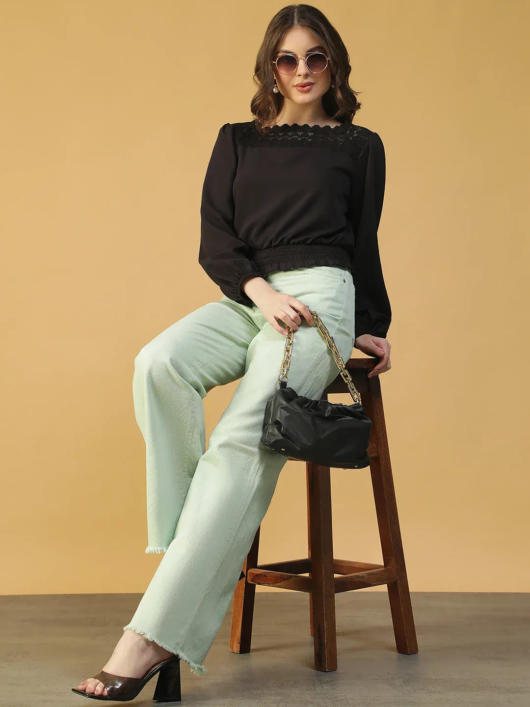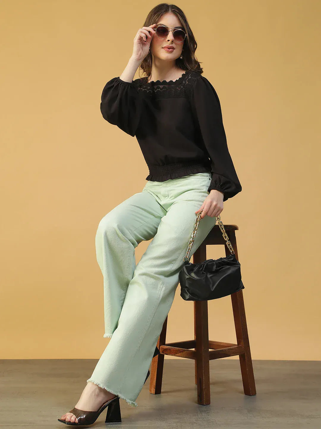 Meet your new go-to wardrobe essential: BLACK top for women. Made from POLYESTER, this piece feels soft, breathable, and perfect for all-day comfort. With its Regular Fit fit, its solid pattern and square neck neckline, it adds effortless charm to your western wear collection. Style it with jeans, trousers, or skirts for casual. A must-have ladies top for smart casual dressing, office wear, college looks, and weekend outings.