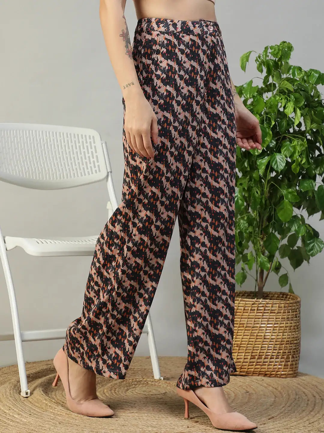 Step into effortless style with these Women Brown Dobby Pants, designed for women who prefer comfort with character. Made from lightweight and textured polyester dobby fabric, these women’s pants offer a soft, breezy feel with a refined touch — perfect for everyday wear. The earthy abstract print adds a subtle artistic vibe, making these trousers a versatile pick for multiple occasions.