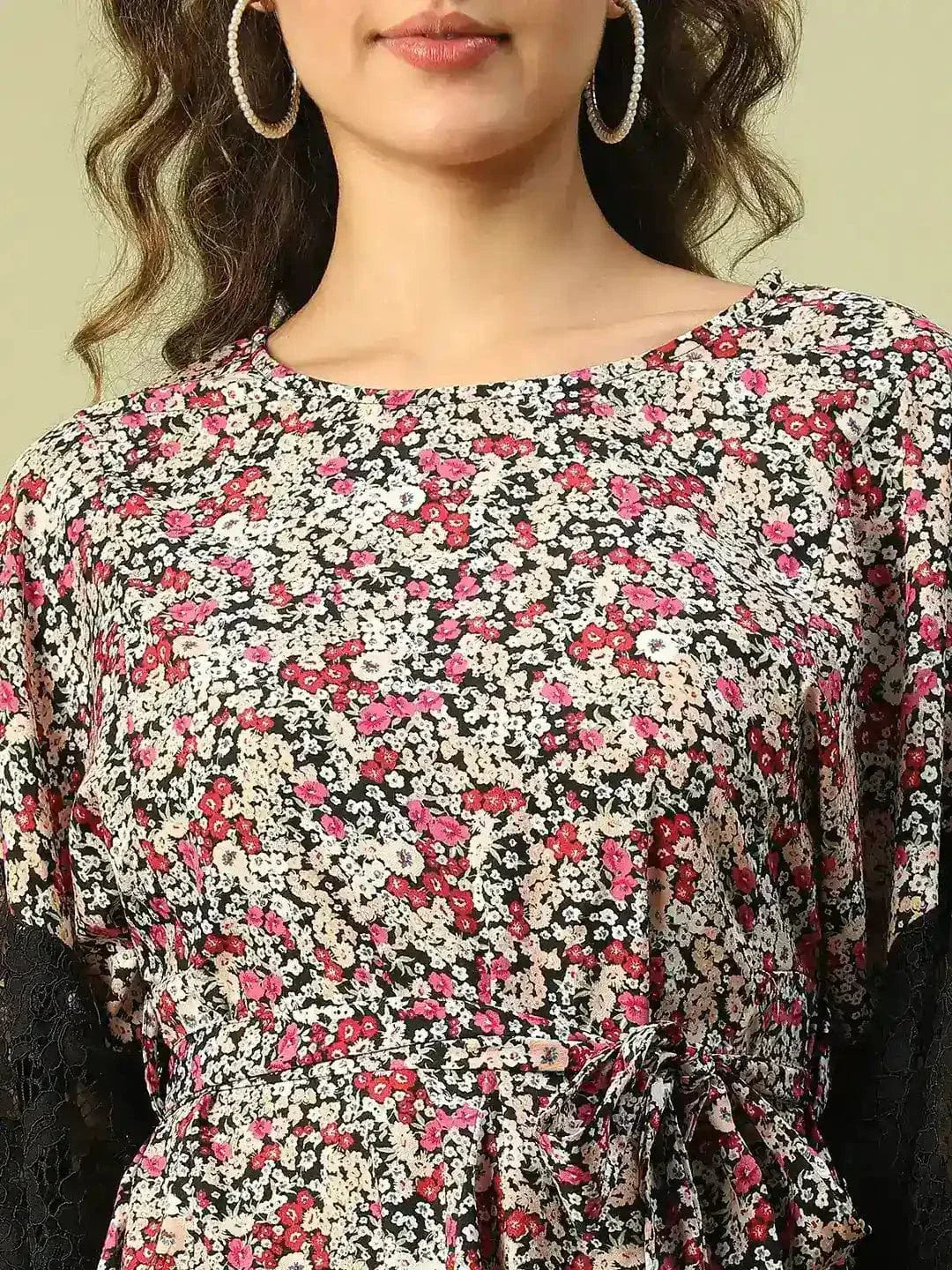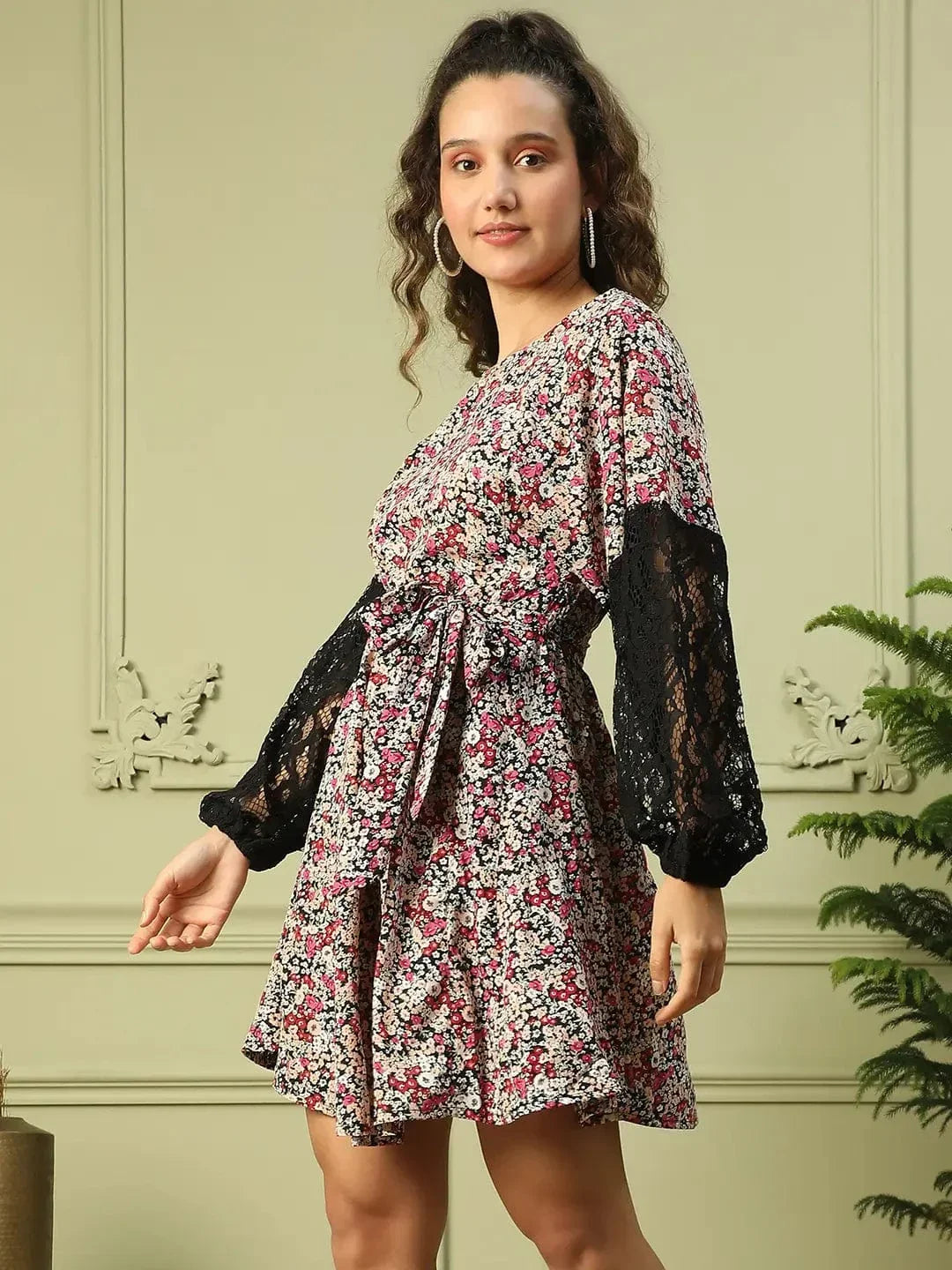 Step into a vibrant and elegant style with this Multicolor Floral Print Long Sleeve Lace Detailed Women's Dress, crafted to make you stand out effortlessly. Featuring a round neck and long sleeves adorned with intricate lace detailing, this above-knee-length dress offers a chic, casual vibe. Made from breathable polyester, this dress is both comfortable and stylish, perfect for casual outings, brunches, or evening events. Its versatile design ensures you are always ready for any occasion