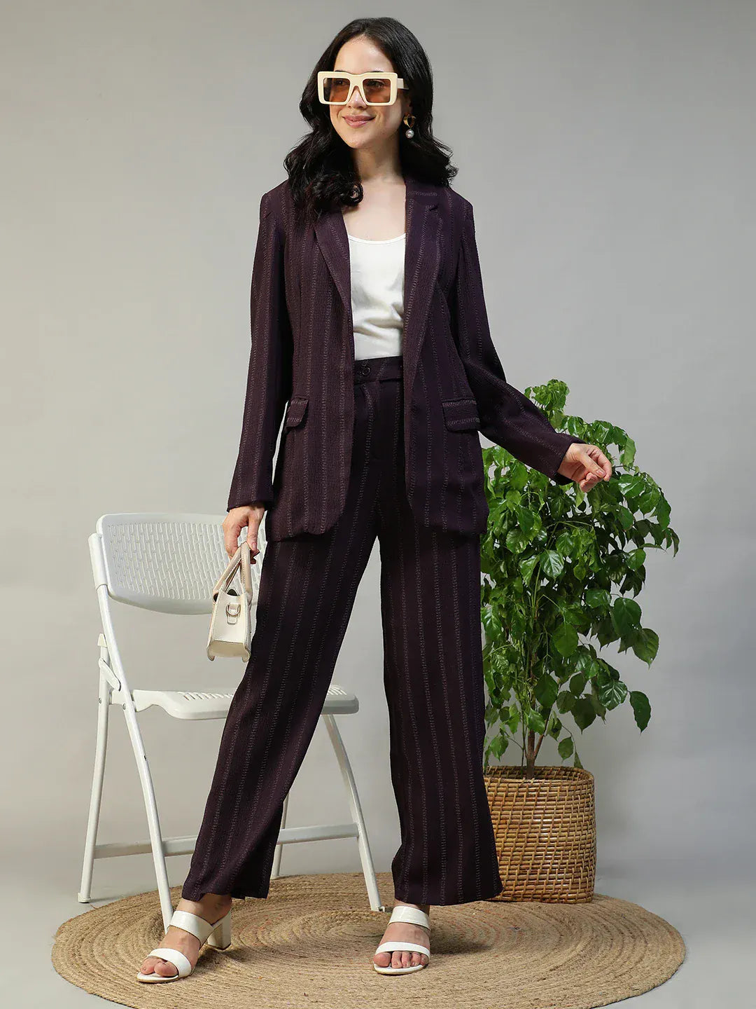 Whether worn over office formals, paired with trousers, or layered over a chic dress, this blazer complements every outfit with ease. The breathable polyester stripe dobby fabric ensures all-day comfort and makes this style perfect for work meetings, travel, or everyday sophistication.