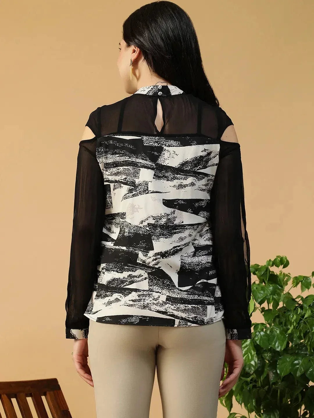 Turn Heads Effortlessly With This Flex Black Marble Print Key Hole Neck Long Sleeve Cold Shoulder Women Top. A Must-Have Piece That Blends Comfort With Bold Style. Designed In A Chic Black Marble Print, This Stylish Women’S Top Features A Trendy Cold Shoulder Design That Adds A Playful Edge, While The Keyhole Neckline Brings Just The Right Touch Of Sass. Crafted In Premium Polyester Fabric, It’S Lightweight, Breathable, And Easy To Care For—Perfect For Both Casual Outings And Dressy Evenings. The Long Sleeves Balance The Cut Out Shoulders, Making It Versatile Enough For Office-To-Party Looks. This Trendy Black Top For Women Is Your Shortcut To Effortless Fashion Without Compromising On Comfort.