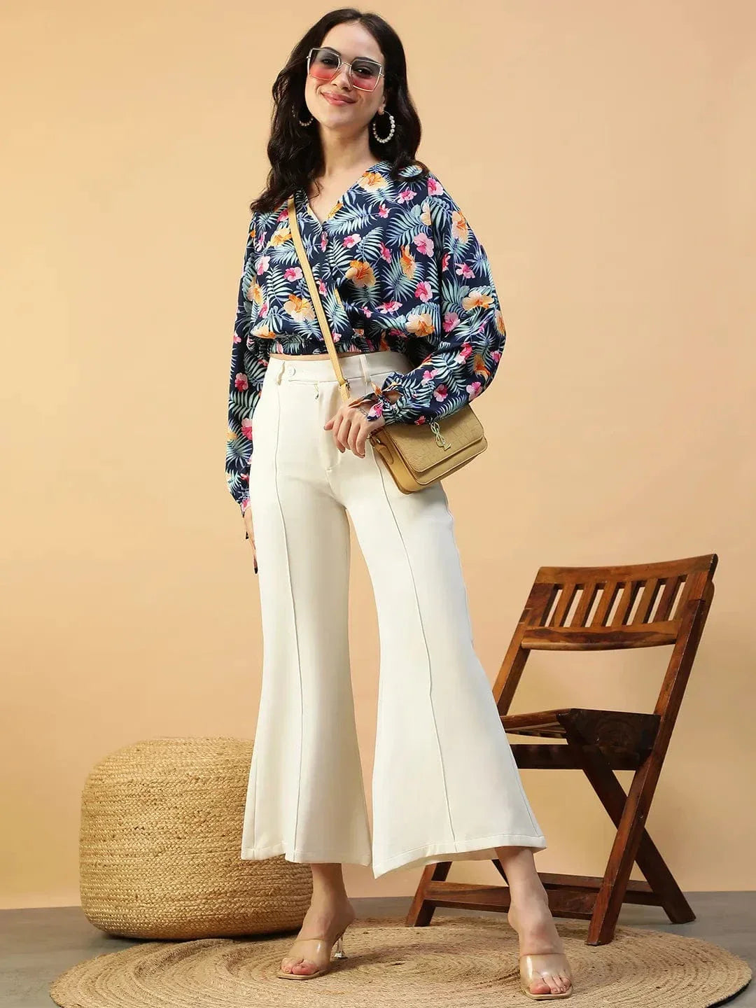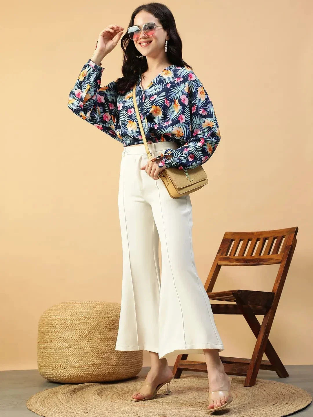 Fresh florals, flattering fit, and all the charm you need.This Approved Blue Floral Print Long Sleeve Elasticated Women Crop Top, designed to keep things effortlessly chic and endlessly wearable. Made from soft, lightweight polyester, this top gives you that smooth, breezy feel with a dash of everyday glam. The vibrant blue base is sprinkled with delicate floral prints, giving off those romantic, vacation-ready vibes—without trying too hard. The flattering V-neckline enhances your collarbone and draws attention in the most subtle, stylish way. What really makes this piece a standout is the long, flowy sleeves with elasticated cuffs add volume and grace, while the elasticated hem and waistline give a snug-yet-comfortable fit. The cropped length hits just right to pair with all your high-rise faves—jeans, skirts, shorts, or trousers.