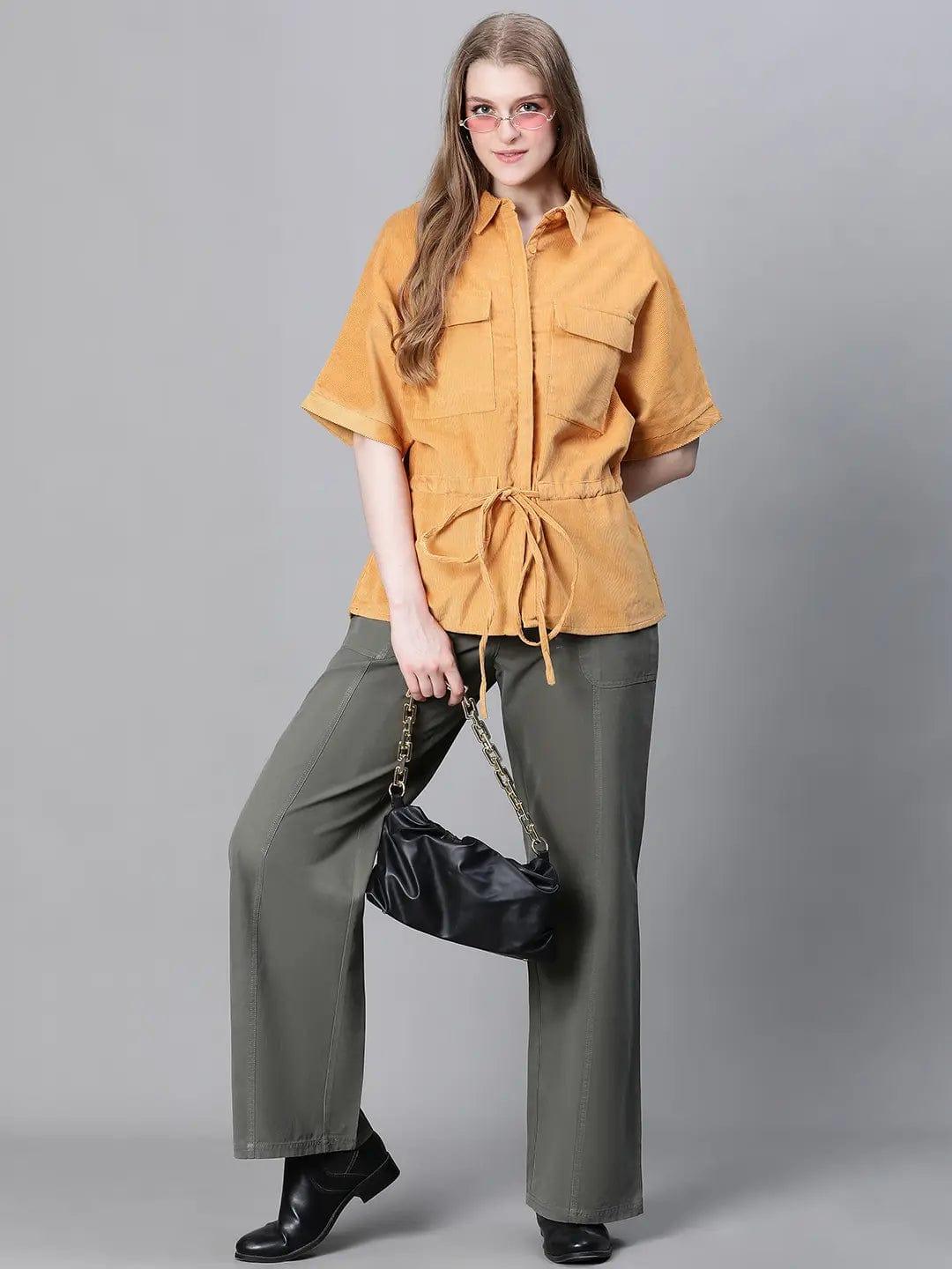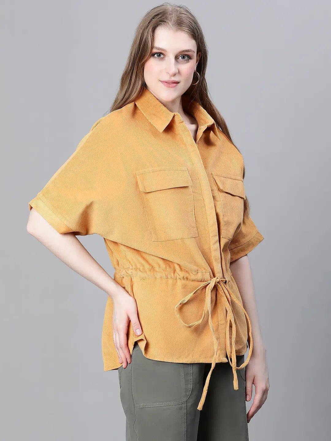 Elevate style with our mustard color cotton Jacket. Fashioned with a Collar, chest pockets, tie-up elastic, and short sleeves. Quality and trend blend for all occasions.